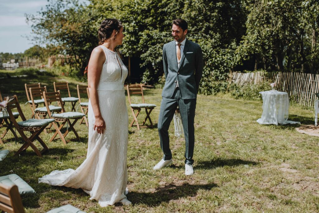 Je kunt ervoor kiezen elkaar tijdens de ceremonie voor het eerst te zien of al daarvoor. Beide hebben voor en nadelen. Mijn advies is wel om de first look vóór de ceremonie te doen. Zo heb je dit spannende moment al gehad en kun je even van elkaar genieten en alvast foto’s maken voordat de gasten komen. Ook is het zo dat bij een first look tijdens de ceremonie veel gasten naar de bruidegom kijken om te kijken hoe hij reageert. Hier moet je ook maar mee om kunnen gaan:)