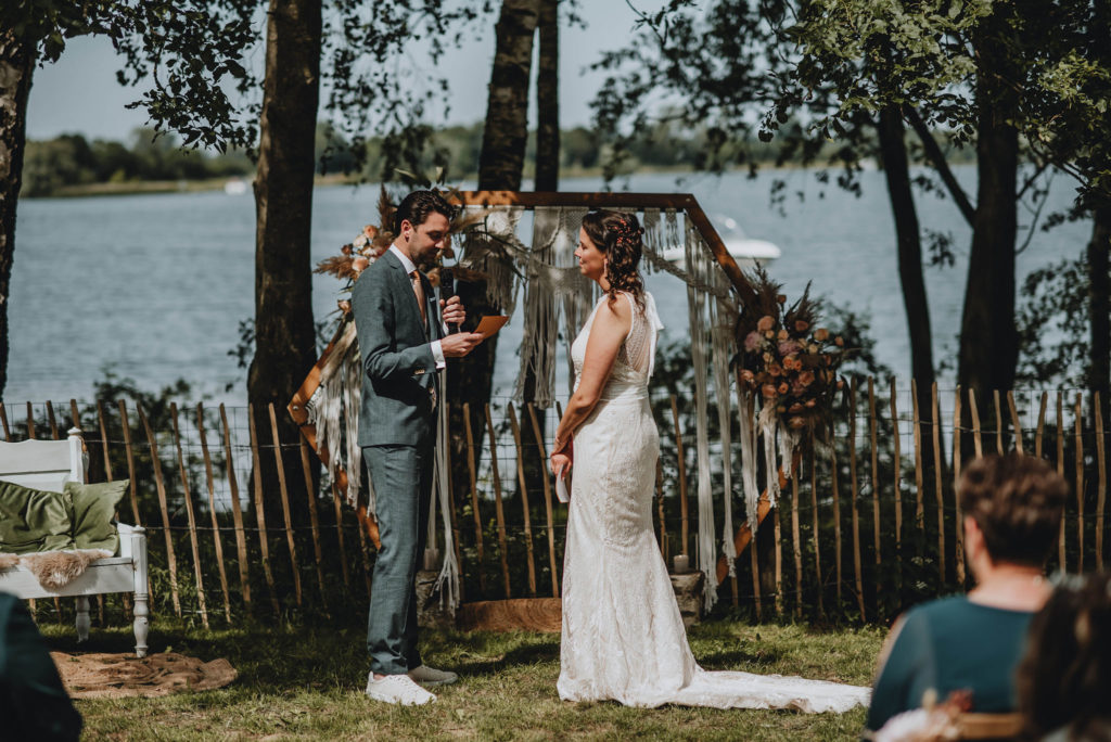 Tijdens de ceremonie lazen wij onze zelf geschreven geloften aan elkaar voor. Ik weet dat Roel mooi kon schrijven dus ik was heel benieuwd. Maar toen hij aan de beurt was, droeg hij ineens een gedicht voor die hij zelf had geschreven. Deze woorden zijn, dankzij het microfoontje wat hij opgespeld had gekregen, opgenomen en onder de trouwvideo gemonteerd. Zo mooi en bijzonder!